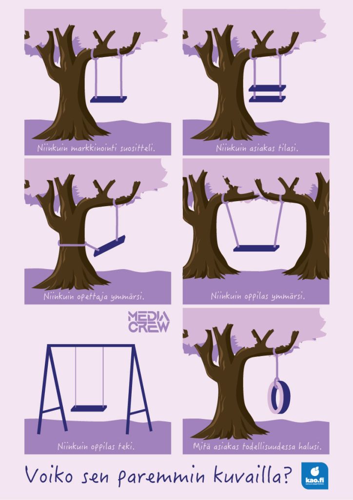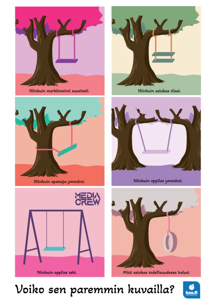 Suunnittelun vaiheista kaksi erillaista julistetta